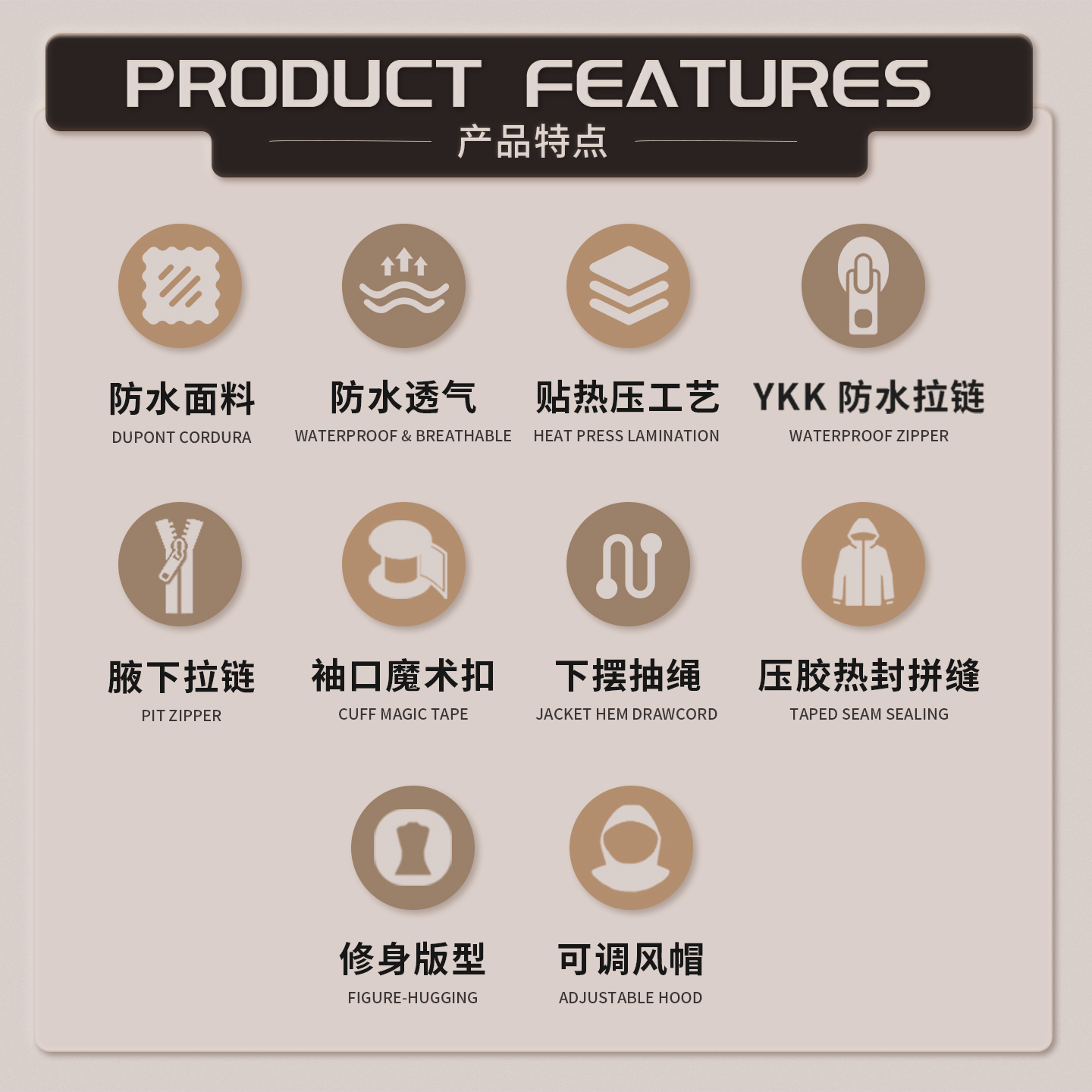 整件拉链运用YKK防水拉链,防水性能强、耐磨损、开合顺滑、兼具防风、环保等功能